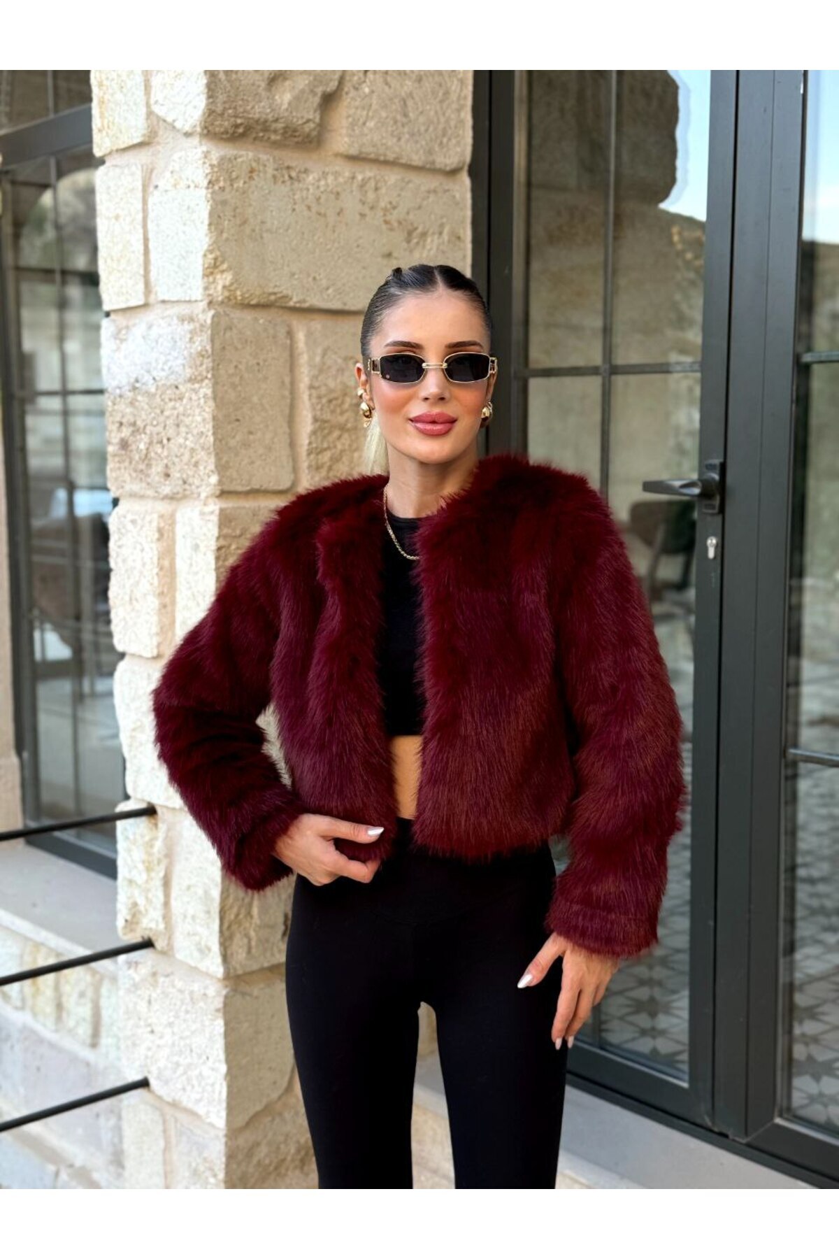 Kadın Kırmızı Kısa Kollu Taşlı Gelin Ve Abiye Kürk Bolero Kadın Kırmızı Kısa Kollu Taşlı Gelin Ve Abiye Kürk Bolero KZ4060 XL