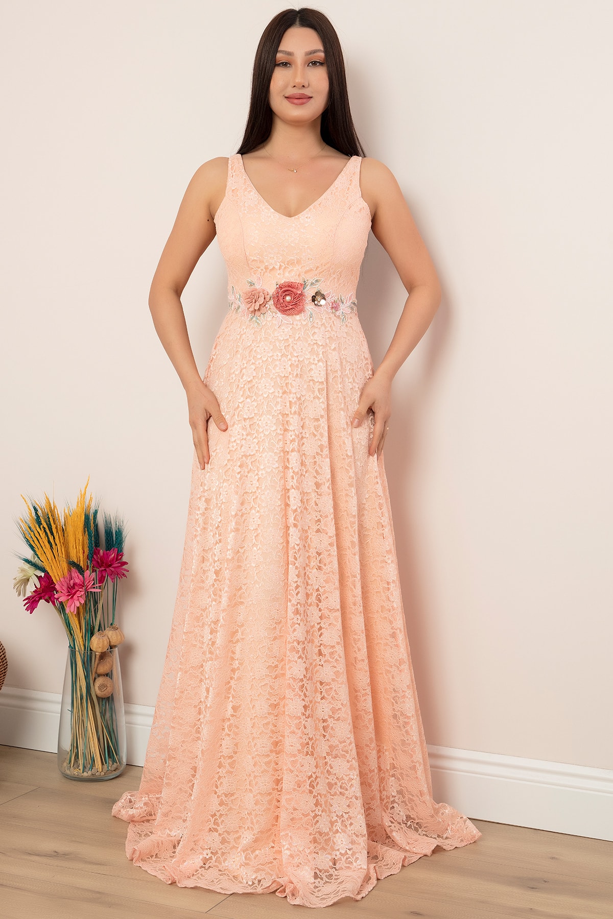 Varna 13102 Beli Çiçekli Dantel Elbise Varna 13102 Beli Çiçekli Dantel Elbise 19Y69060U13 42