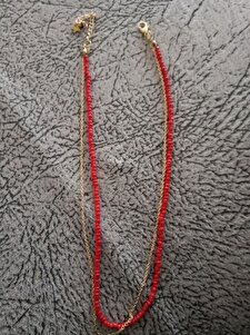 Ince Zincirli Kan Kırmızı Boncuk Kolye Seti Ince Zincirli Kan Kırmızı Boncuk Kolye Seti TYC00509327787 35 cm