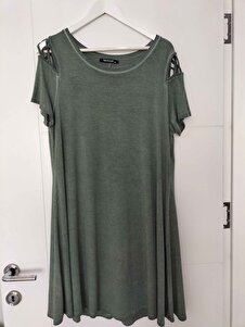 Omuzu Pencere Detaylı Büyük Beden Kadın Rahat Günlük Kullanım Kısa Elbise-yeşil Omuzu Pencere Detaylı Büyük Beden Kadın Rahat Günlük Kullanım Kısa Elbise-yeşil SEA-ELBS2119 46