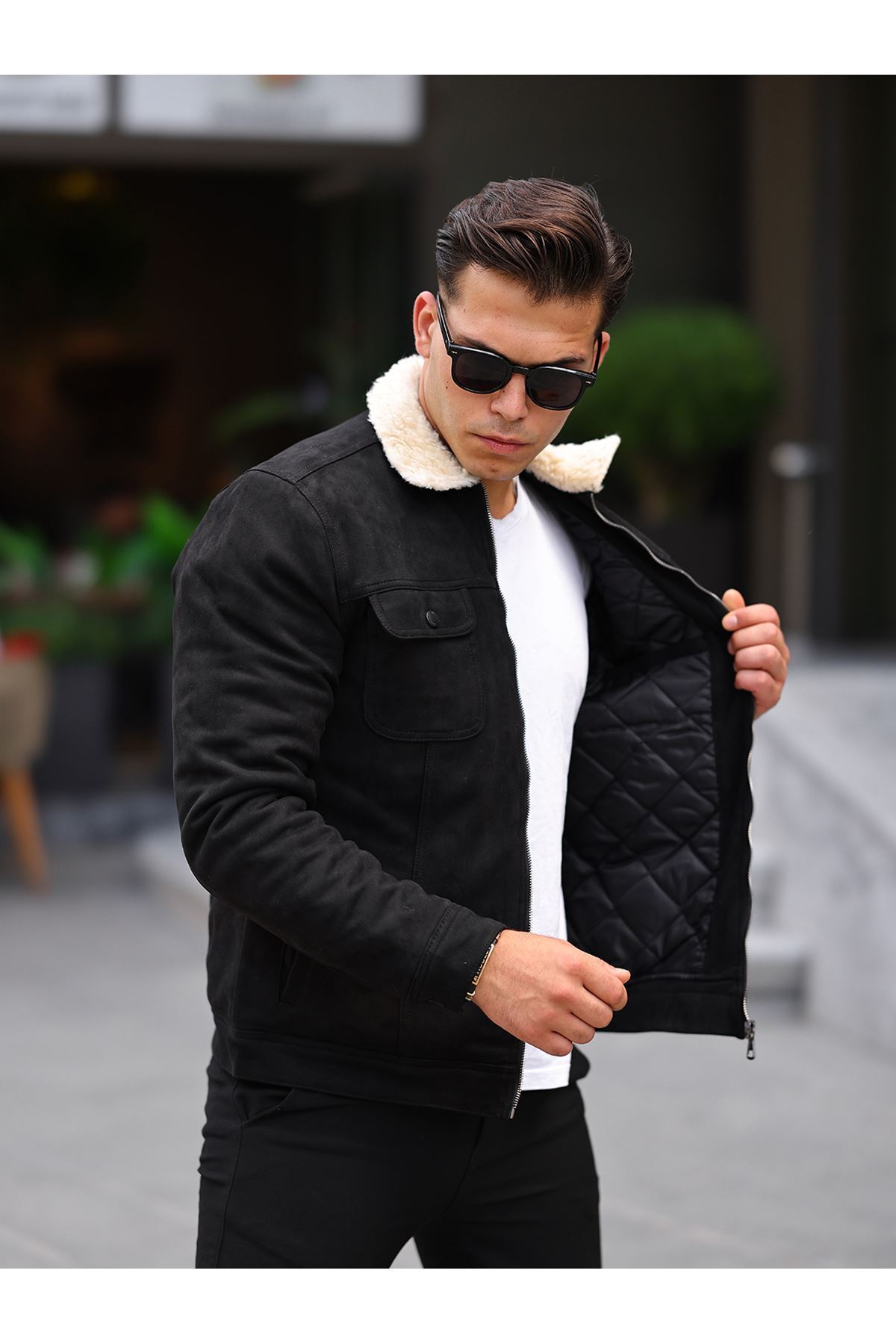 Fermuarlı Süet Kürklü Siyah Erkek Ceket Fermuarlı Süet Kürklü Siyah Erkek Ceket ke13384 2XL