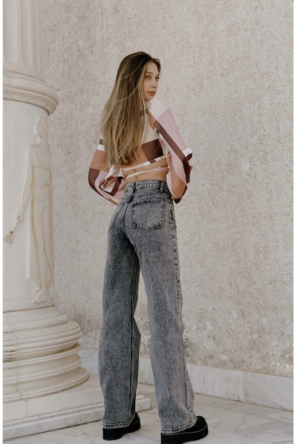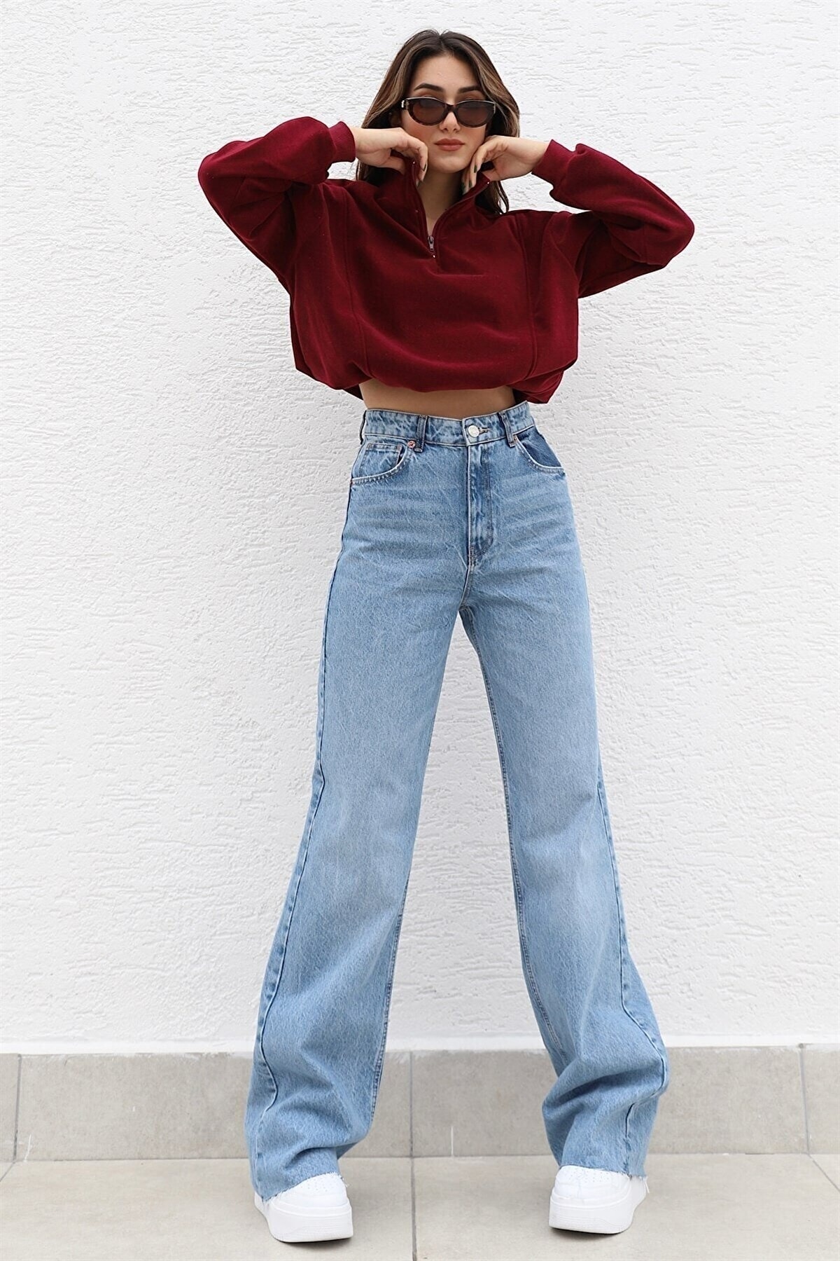 Kahverengi Likralı Süper Yüksek Bel Salaş Jeans Palazzo Pantolon Süper Yüksek Wide Leg Kahverengi Likralı Süper Yüksek Bel Salaş Jeans Palazzo Pantolon Süper Yüksek Wide Leg sls1530 44