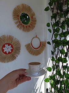 Doğal Muz Lifi Ahşap Boncuklu El Yapımı Duvar-ofis-balkon-bebek Odası Dekorasyonu Doğal Muz Lifi Ahşap Boncuklu El Yapımı Duvar-ofis-balkon-bebek Odası Dekorasyonu Yuvarlak