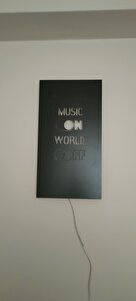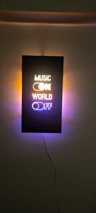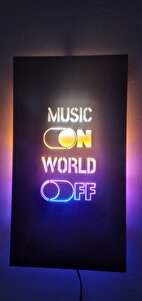 Music On World Off Led Işıklı Ahşap Tablo 45x24cm Music On World Off Led Işıklı Ahşap Tablo 45x24cm CAKRA002 52 x 24