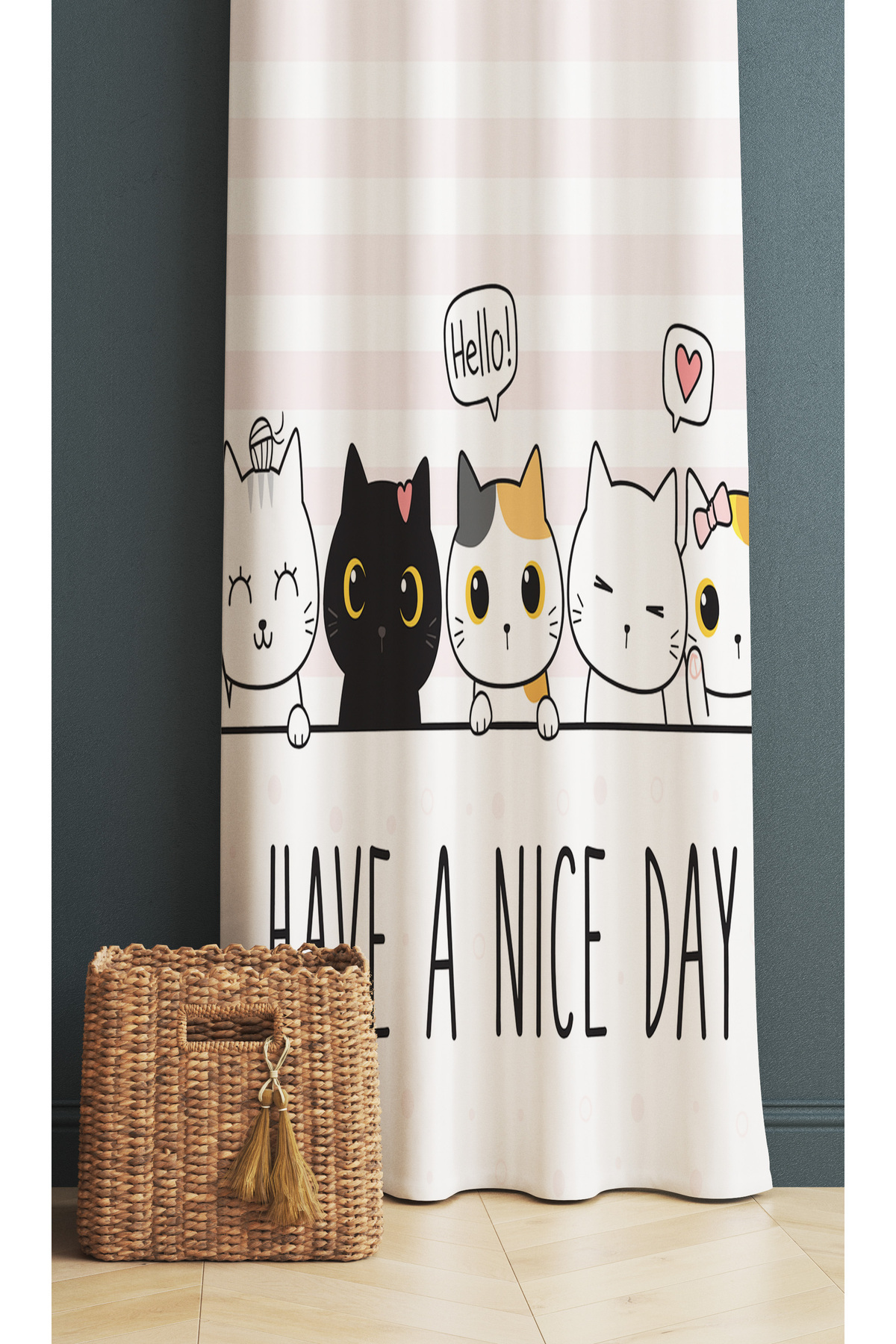Yıldızlı Kedili Çift Kanatlı Çocuk Odası Fon Perde Yıldızlı Kedili Çift Kanatlı Çocuk Odası Fon Perde cd05-P 70 x 260