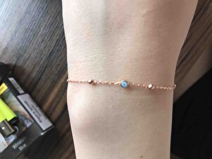 925 Ayar Rose Kaplamalı Top Zincirli Mavi Yuvarlak Nazar Göz Gümüş Bileklik 925 Ayar Rose Kaplamalı Top Zincirli Mavi Yuvarlak Nazar Göz Gümüş Bileklik SB0554 تک سایز