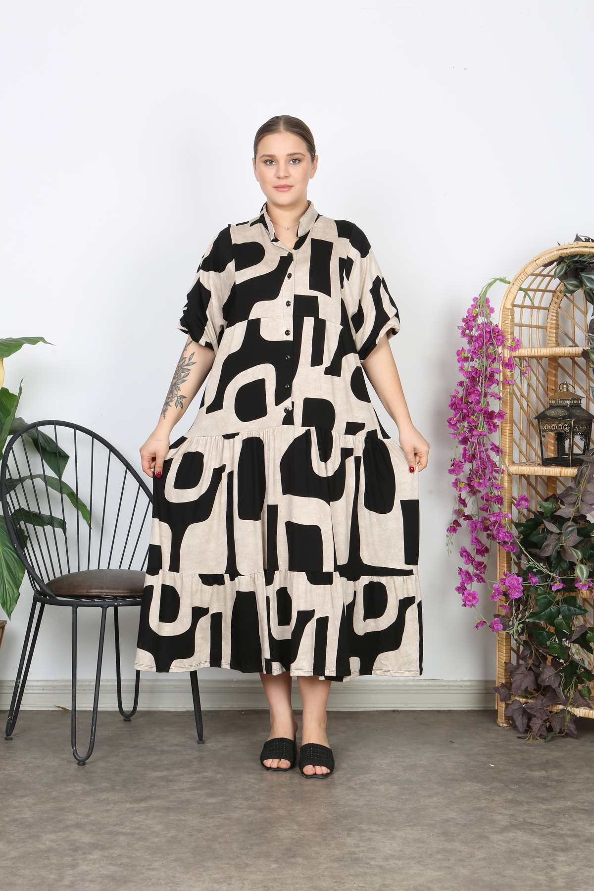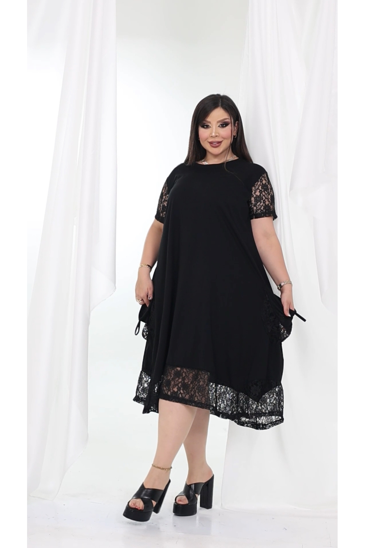 Kadın Büyük Beden Siyah Kolları Güpür Likralı Viskon Elbise Kadın Büyük Beden Siyah Kolları Güpür Likralı Viskon Elbise H4056 56