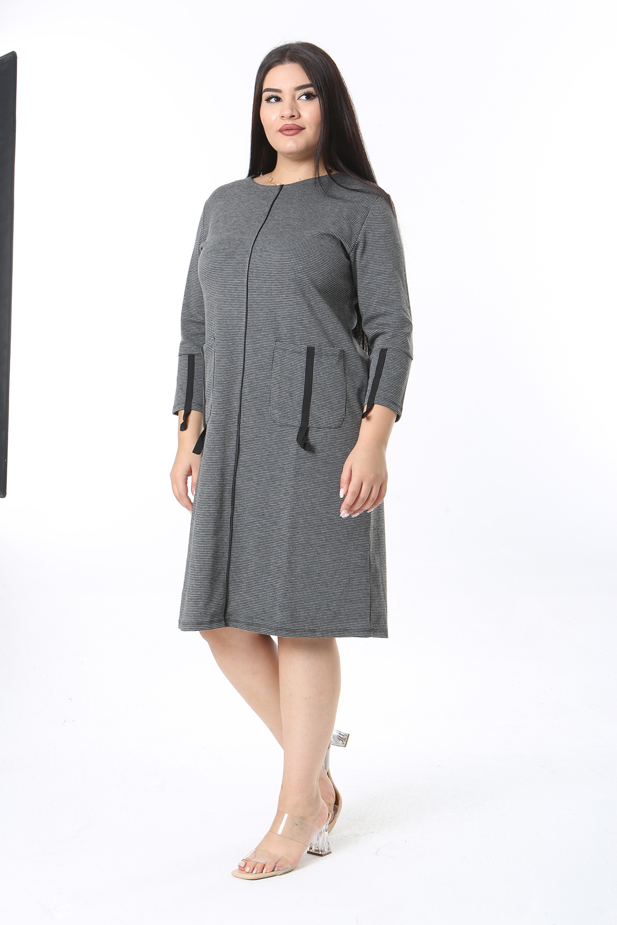 Kadın Büyük Beden Gri Bebe Yaka Ekose Desenli Elbise 65n33564 Kadın Büyük Beden Gri Bebe Yaka Ekose Desenli Elbise 65n33564 65N33564 48-50