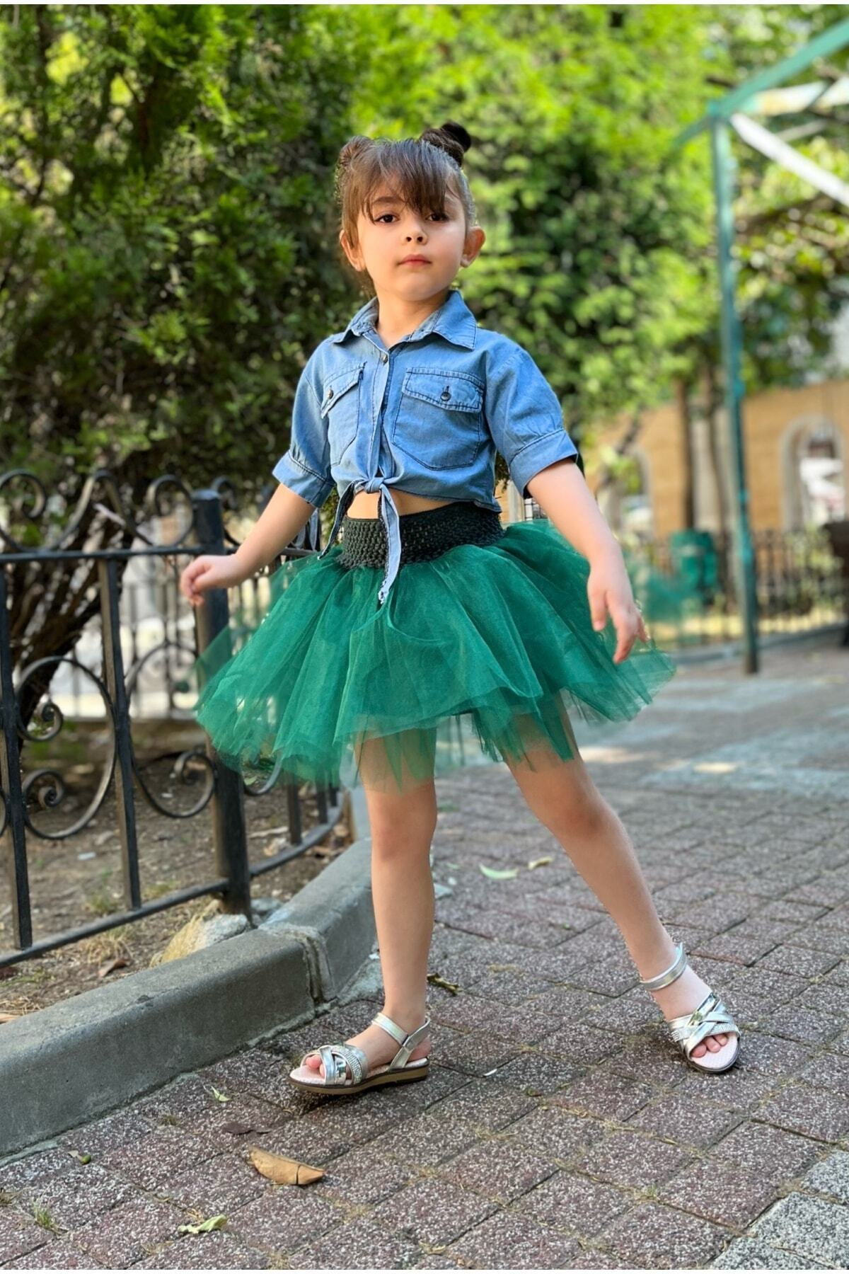 Yeşil Tütü Denim Gömlek Yeşil Tütü Denim Gömlek AK713 11-12 Yaş