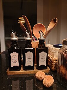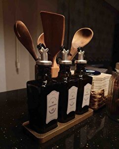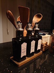 Ahşap Stantlı Siyah Amber 3'lü Italyan Zeytinyağı Sıvıyağ Şişesi Yağdanlık Yağlık Yılbaşı Ahşap Stantlı Siyah Amber 3'lü Italyan Zeytinyağı Sıvıyağ Şişesi Yağdanlık Yağlık Yılbaşı 3lüitalyan تک سایز