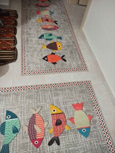 Kaymaz Taban Dijital Baskı Yıkanabilir Yolluk Mutfak Halısı Kaymaz Taban Dijital Baskı Yıkanabilir Yolluk Mutfak Halısı H-BALIK 160 x 230