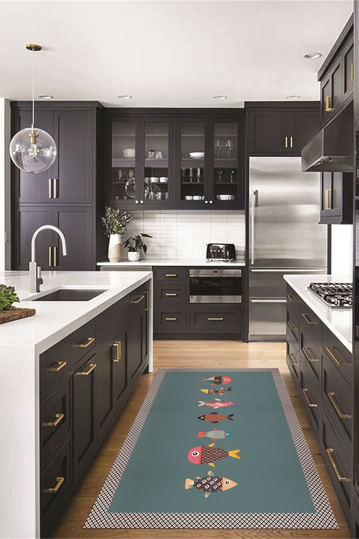 Kaymaz Taban Dijital Baskı Yıkanabilir Yolluk Mutfak Halısı Kaymaz Taban Dijital Baskı Yıkanabilir Yolluk Mutfak Halısı H-BALIK 160 x 230