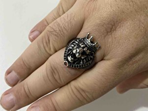 925 Ayar Gümüş Erkek Yüzüğü Kral Taclı Aslan Figürlü 100113 925 Ayar Gümüş Erkek Yüzüğü Kral Taclı Aslan Figürlü 100113 16,5
