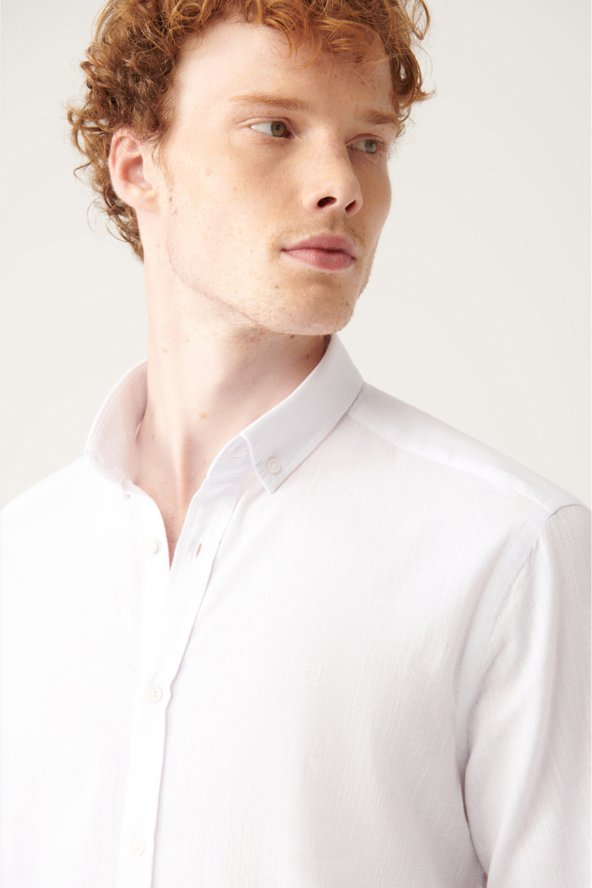 Erkek Beyaz Düğmeli Yaka %100 Pamuk Keten Dokulu Gömlek E002141 Erkek Beyaz Düğmeli Yaka %100 Pamuk Keten Dokulu Gömlek E002141 3XL