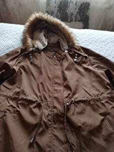 Büyük Beden Kapşonlu Ribanalı Mont Taba MİH15500 Büyük Beden Kapşonlu Ribanalı Mont Taba MİH15500 60