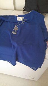 Saks Mavi Yarasa Kol Kolyeli Büyük Beden Şifon Bluz Saks Mavi Yarasa Kol Kolyeli Büyük Beden Şifon Bluz 2109 50