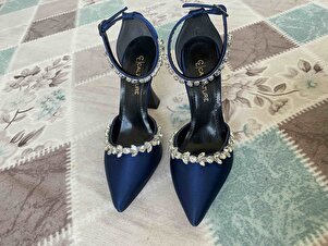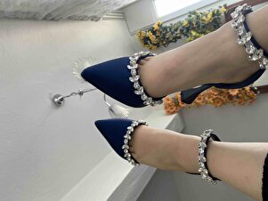 Lacivert Saten 11cm Şampanya Topuklu Bilekten Kemerli Çift Suyolu Taşlı Abiye Stiltto Kadın Ayakkabı Lacivert Saten 11cm Şampanya Topuklu Bilekten Kemerli Çift Suyolu Taşlı Abiye Stiltto Kadın Ayakkabı LA-01Mimoza 41