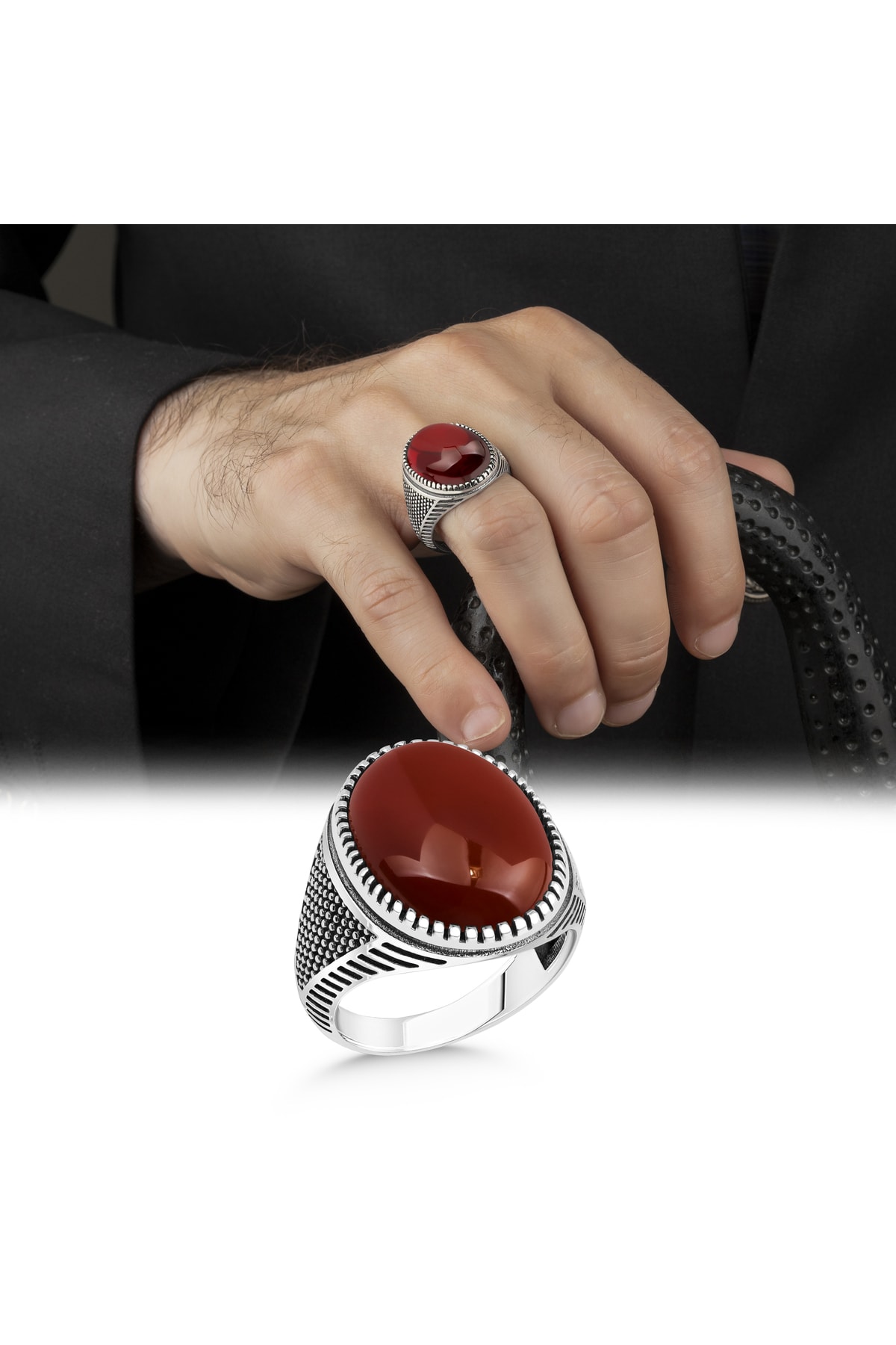 925 Ayar Gümüş Erkek Yüzük Kırmızı Akik Taşlı 925 Ayar Gümüş Erkek Yüzük Kırmızı Akik Taşlı ARGNT-SLVR3014E5 31