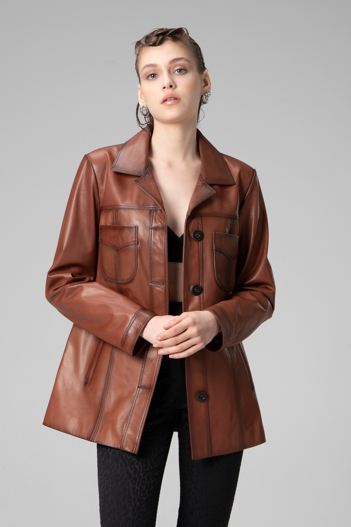 Stella Kadın Klasik Hakiki Deri Ceket Viski Stella Kadın Klasik Hakiki Deri Ceket Viski WM032_ZİG 4XL