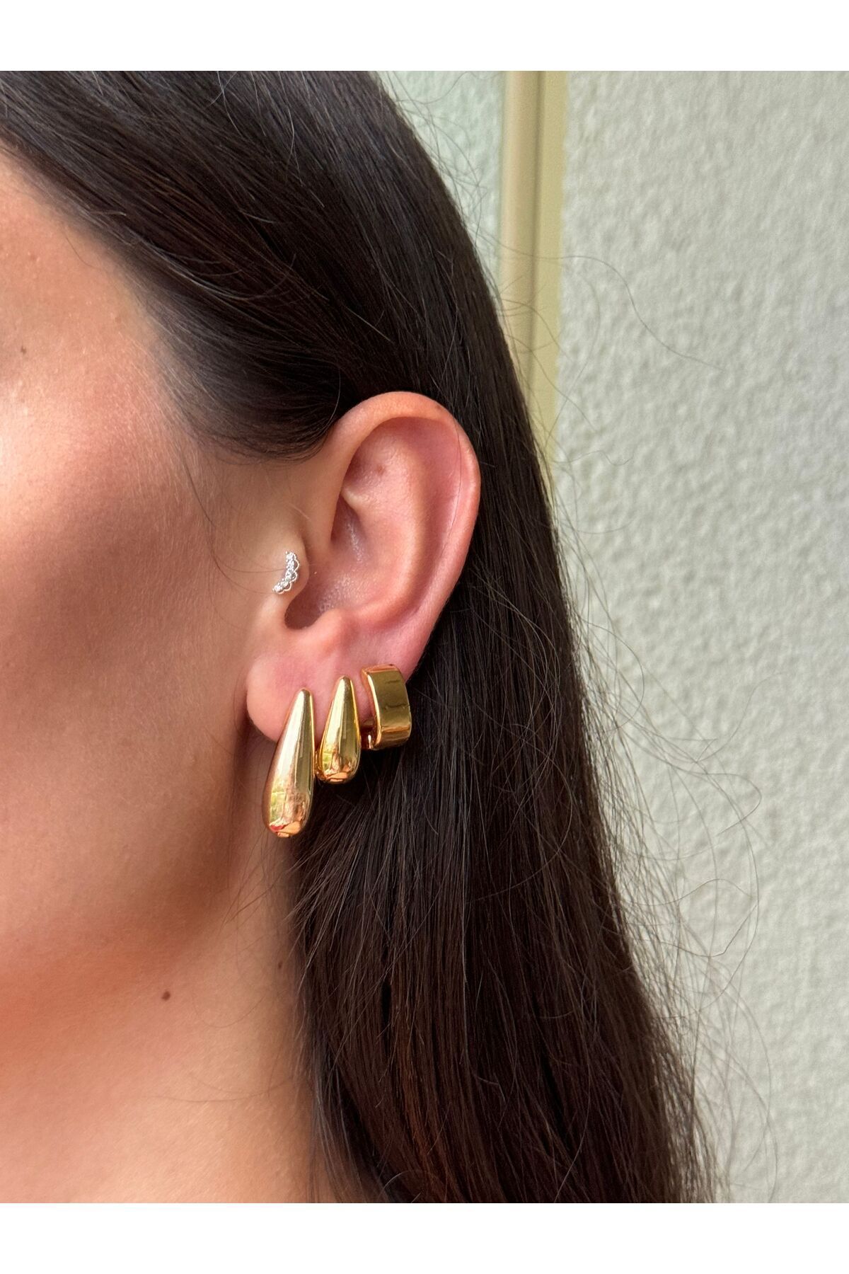 Vip Çelik Gold Renk Zirkon Baget Taş Sallantılı Antialerjik Lazer Kesim Oval Halka Küpe Gen. 1,5 Cm. Vip Çelik Gold Renk Zirkon Baget Taş Sallantılı Antialerjik Lazer Kesim Oval Halka Küpe Gen. 1,5 Cm. S1423 تک سایز