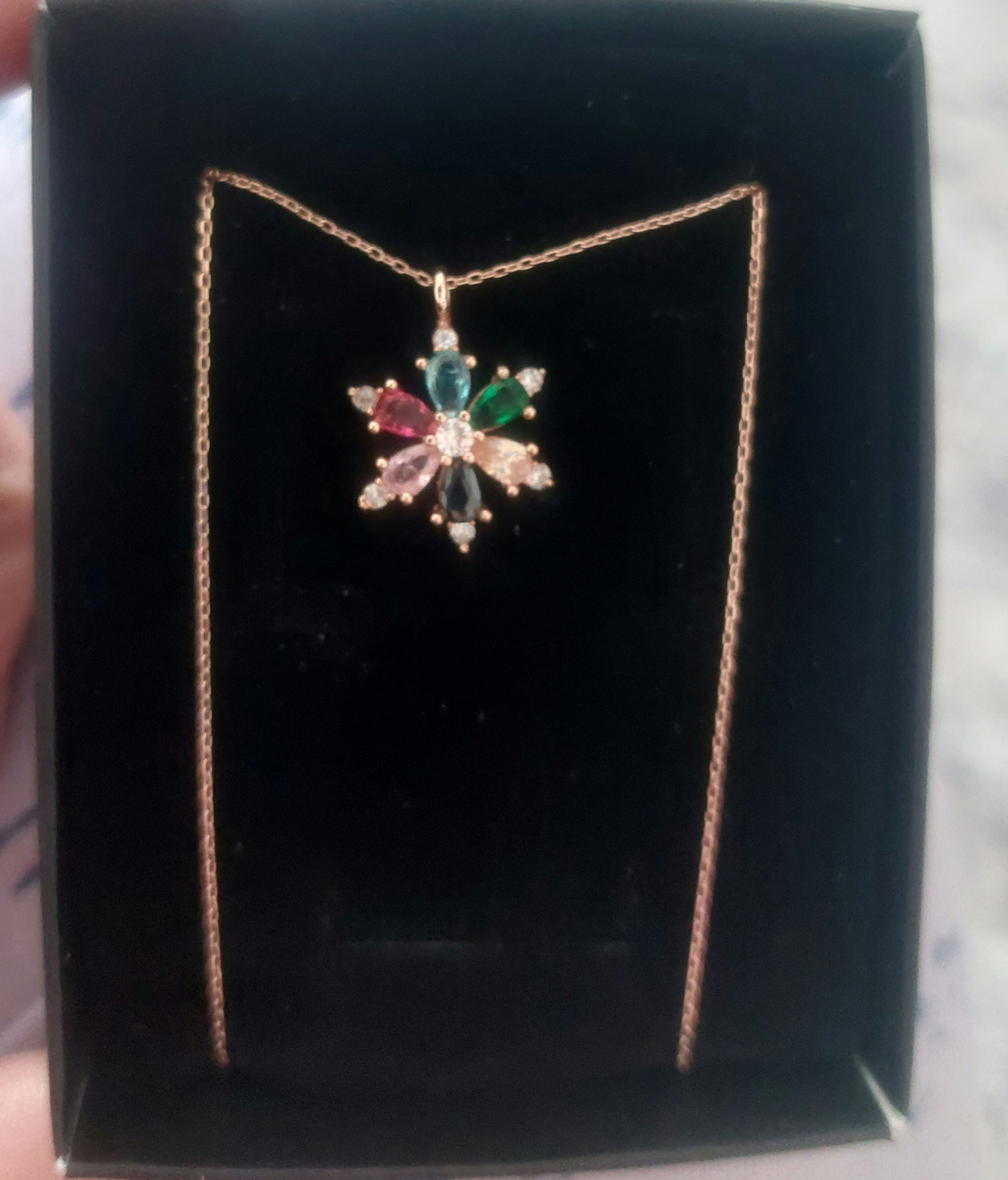 925 Ayar Gümüş Zincirli Mix Taşlı Rose Kaplama Lotus Kamelya Çiçeği Kolye 925 Ayar Gümüş Zincirli Mix Taşlı Rose Kaplama Lotus Kamelya Çiçeği Kolye kly2112681605 تک سایز