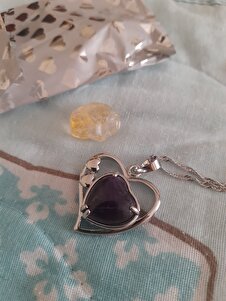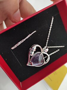 Sertifikalı Ametist Doğaltaş Kalpli Kolye Ucu, Gümüş Zincirle Birlikte Ku010 Sertifikalı Ametist Doğaltaş Kalpli Kolye Ucu, Gümüş Zincirle Birlikte Ku010 KU190009 51 CM