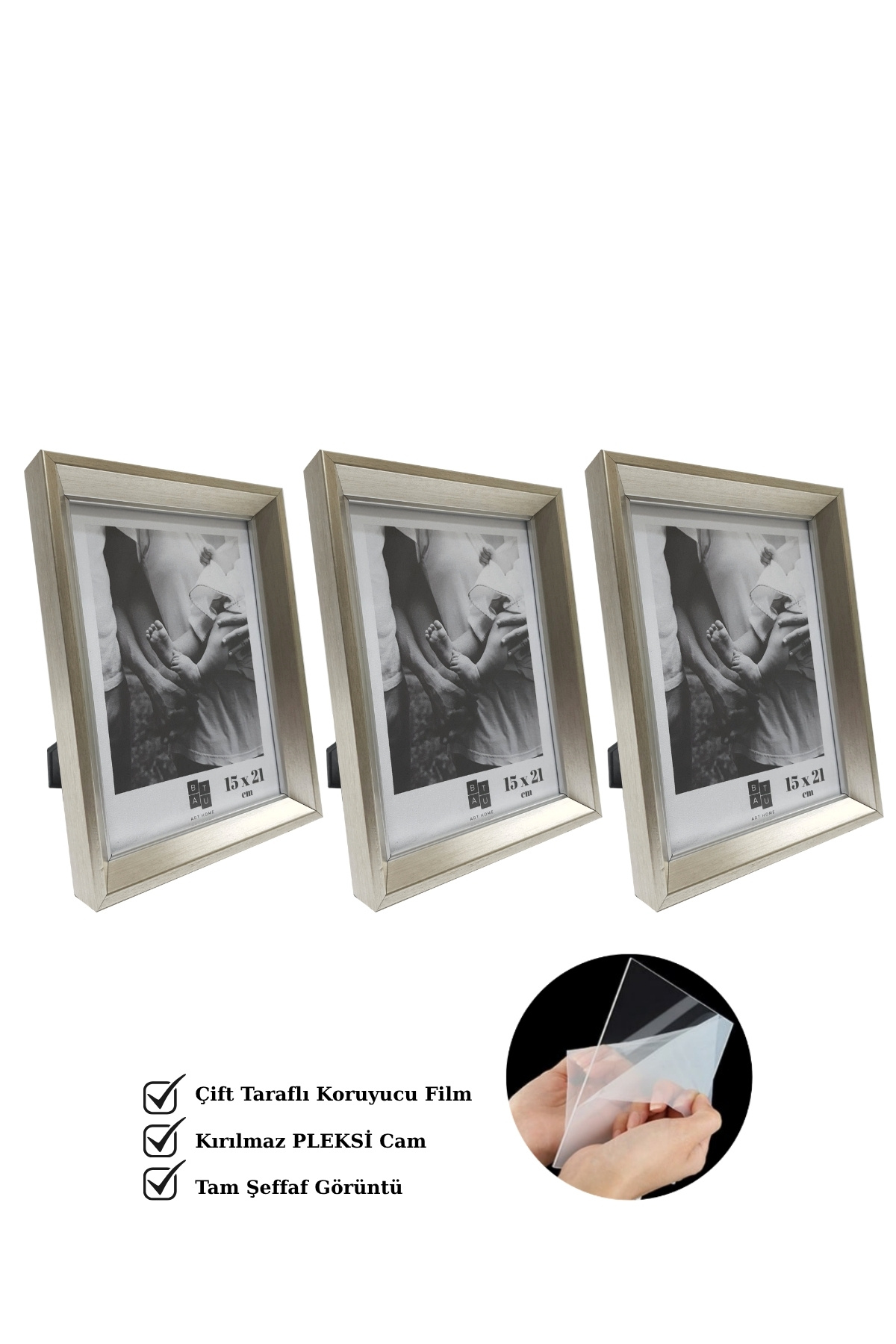 Fotoğraf Çerçevesi Üçlü Set Korumalı Kırılmaz Pleksi Camlı Masaüstü Ayaklı 10x15,13x18,15x21 Cm Fotoğraf Çerçevesi Üçlü Set Korumalı Kırılmaz Pleksi Camlı Masaüstü Ayaklı 10x15,13x18,15x21 Cm BAH3S006 تک سایز