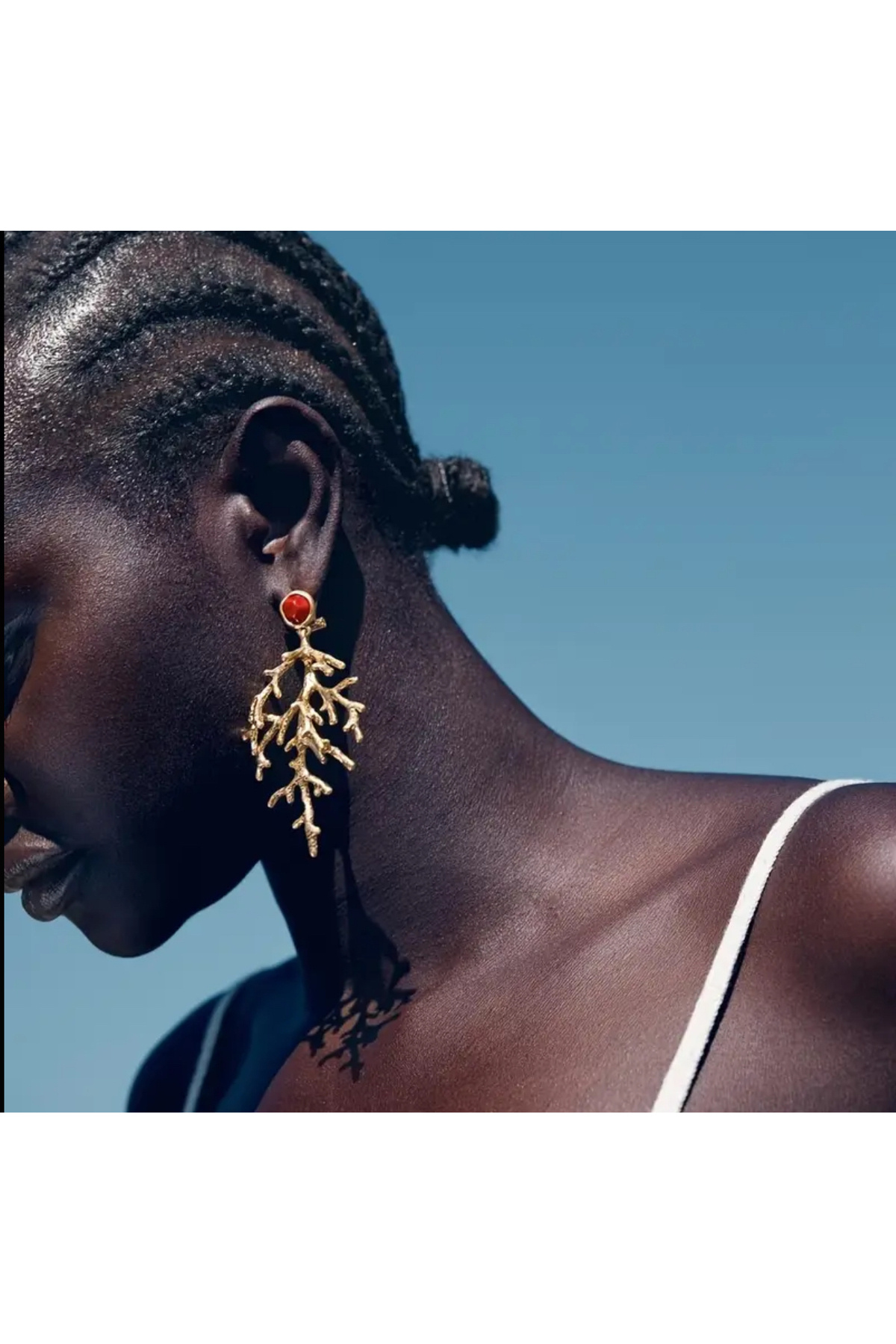 Tasarım 14 K Altın Kaplamalı Gerçek Mercan Taşlı Küpe Tasarım 14 K Altın Kaplamalı Gerçek Mercan Taşlı Küpe TOE792 تک سایز