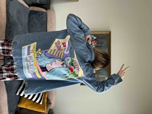 Pop Art Denim Ceket, Baskılı Kadın Kot Mont, Rahat Kalıplı Mavi Mont Pop Art Denim Ceket, Baskılı Kadın Kot Mont, Rahat Kalıplı Mavi Mont hdhshxh 42