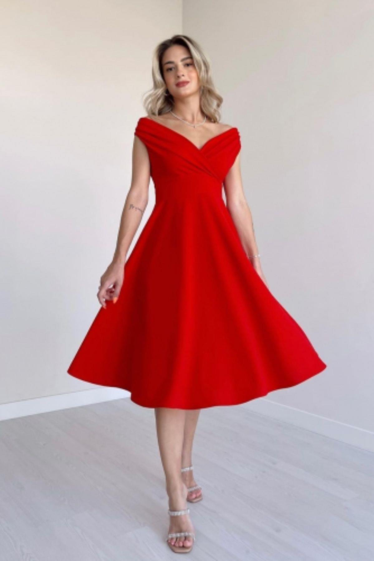 Düğme Detaylı Kloş Elbise Kırmızı Düğme Detaylı Kloş Elbise Kırmızı EL582187 XL