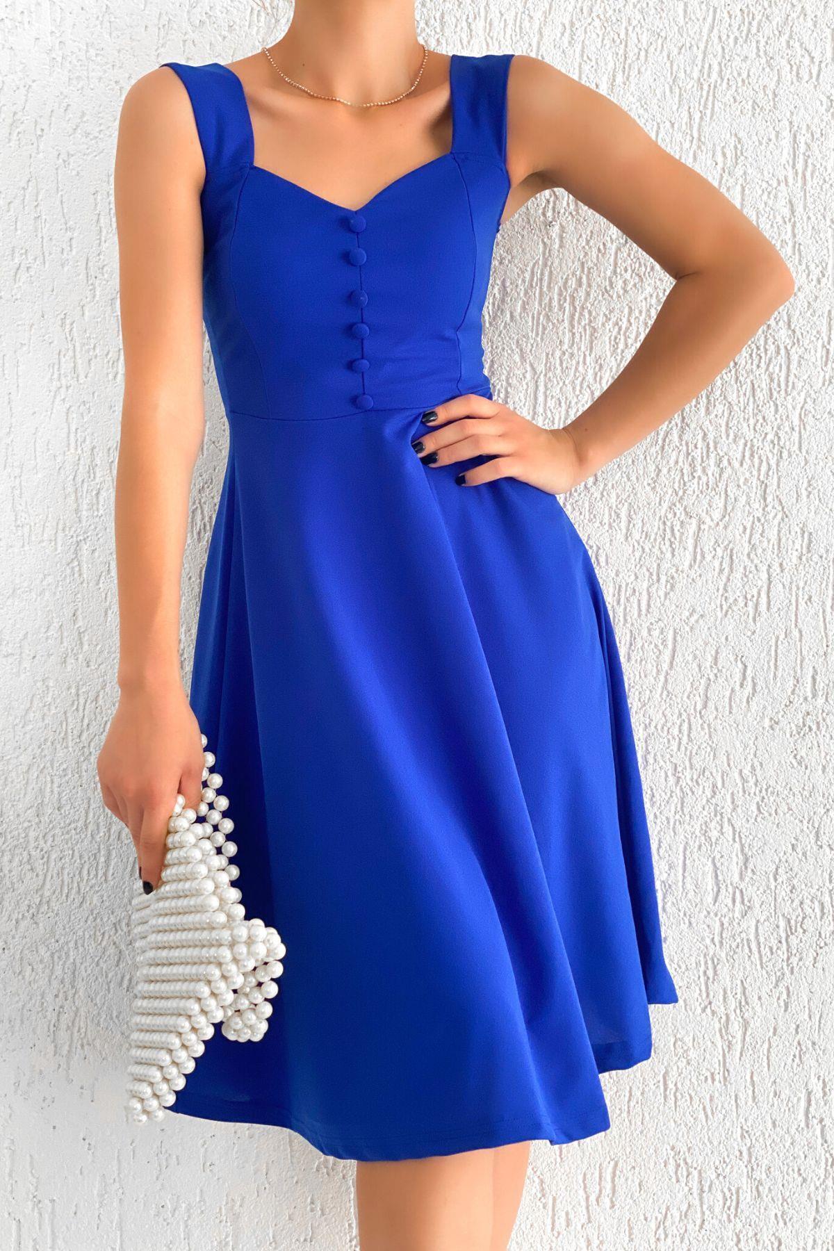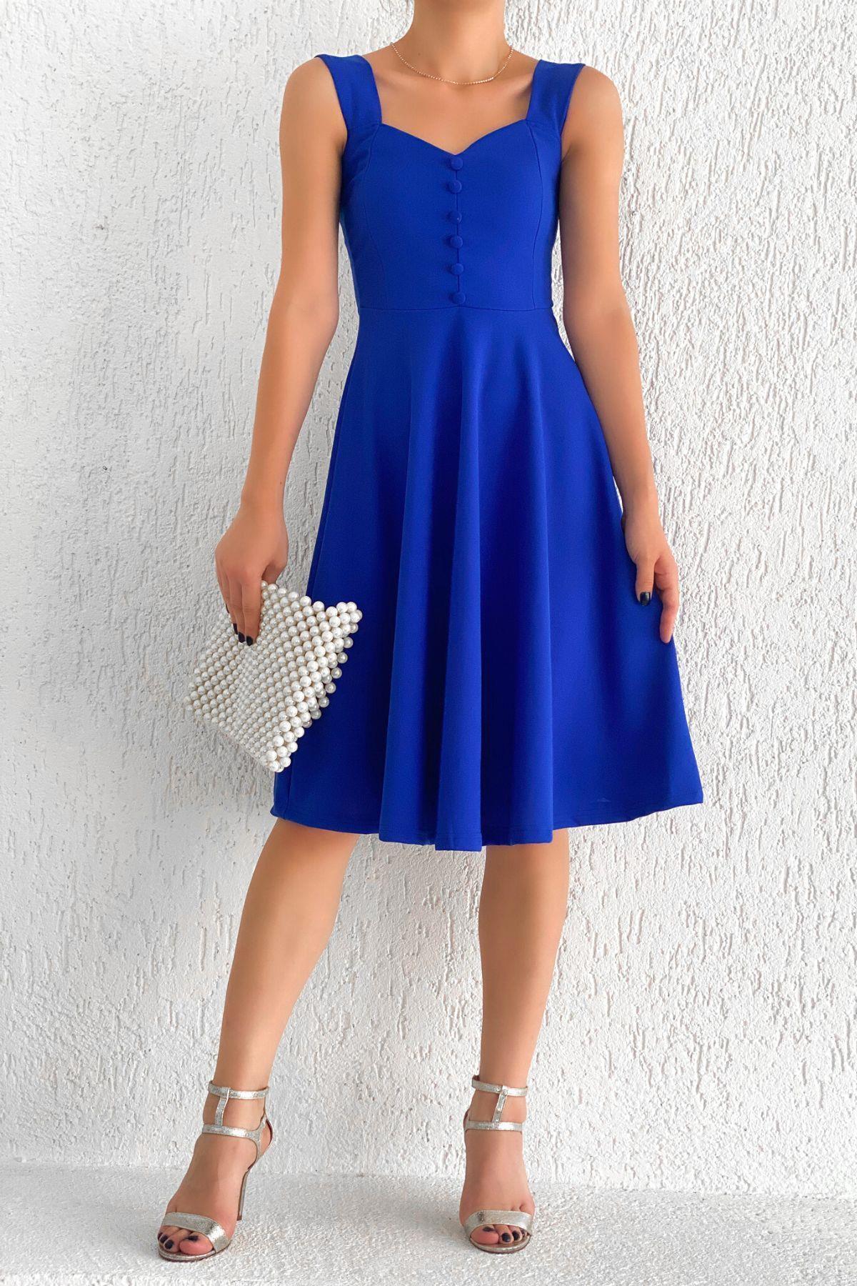 Düğme Detaylı Kloş Elbise Saks Düğme Detaylı Kloş Elbise Saks EL582187 XL