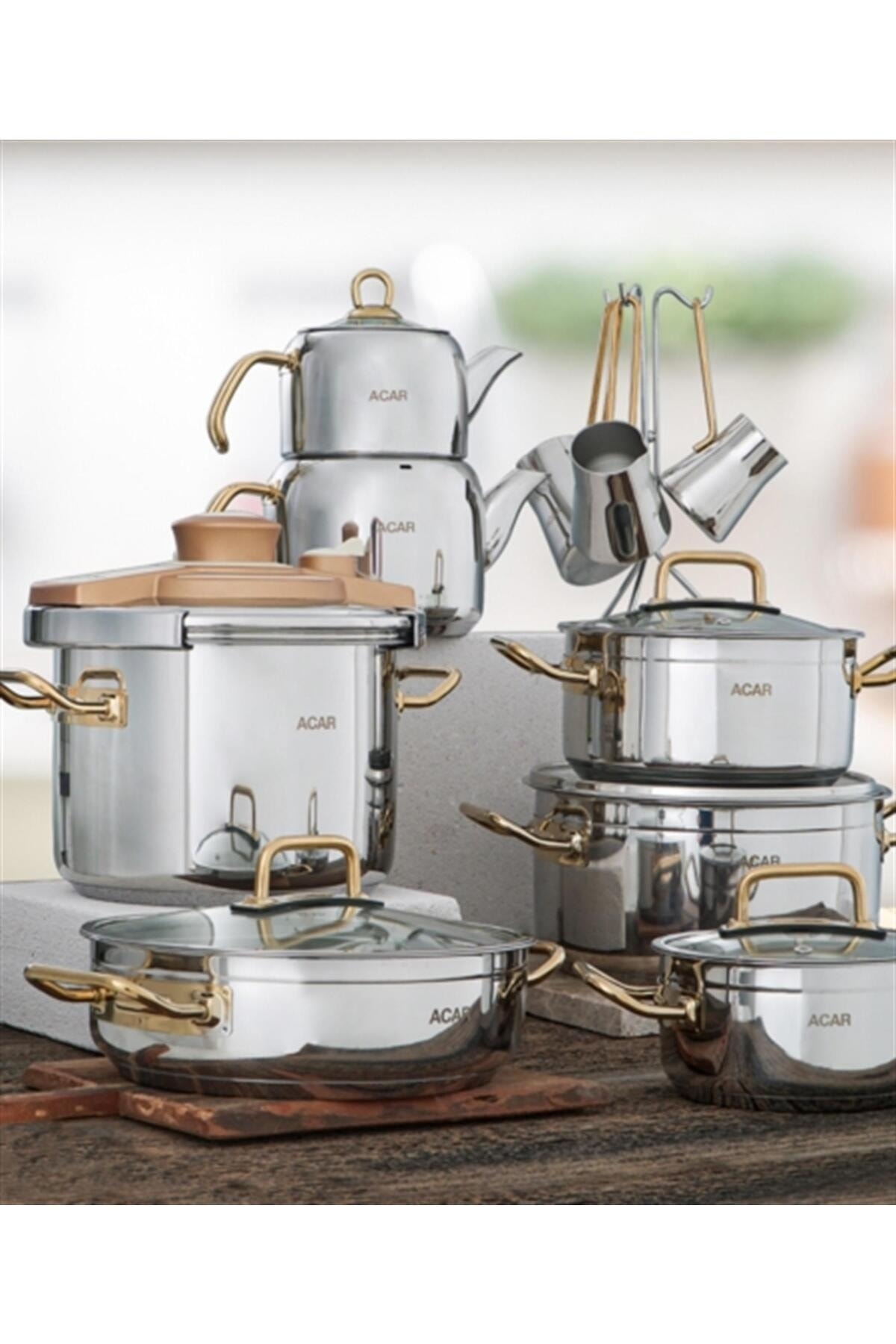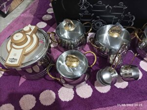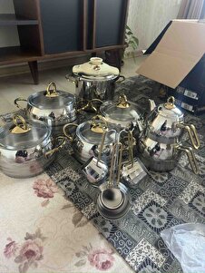 Akasya 18 Parça Gold Çelik Tencere Seti 0445 Akasya 18 Parça Gold Çelik Tencere Seti 0445 XKH-21-0445/1 تک سایز