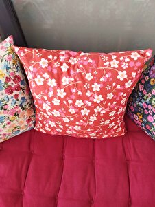 Çift Tarafı Baskılı Kırmızı Çiçek Desenli Tekli Kırlent Kılıfı Çift Tarafı Baskılı Kırmızı Çiçek Desenli Tekli Kırlent Kılıfı PL-TEK