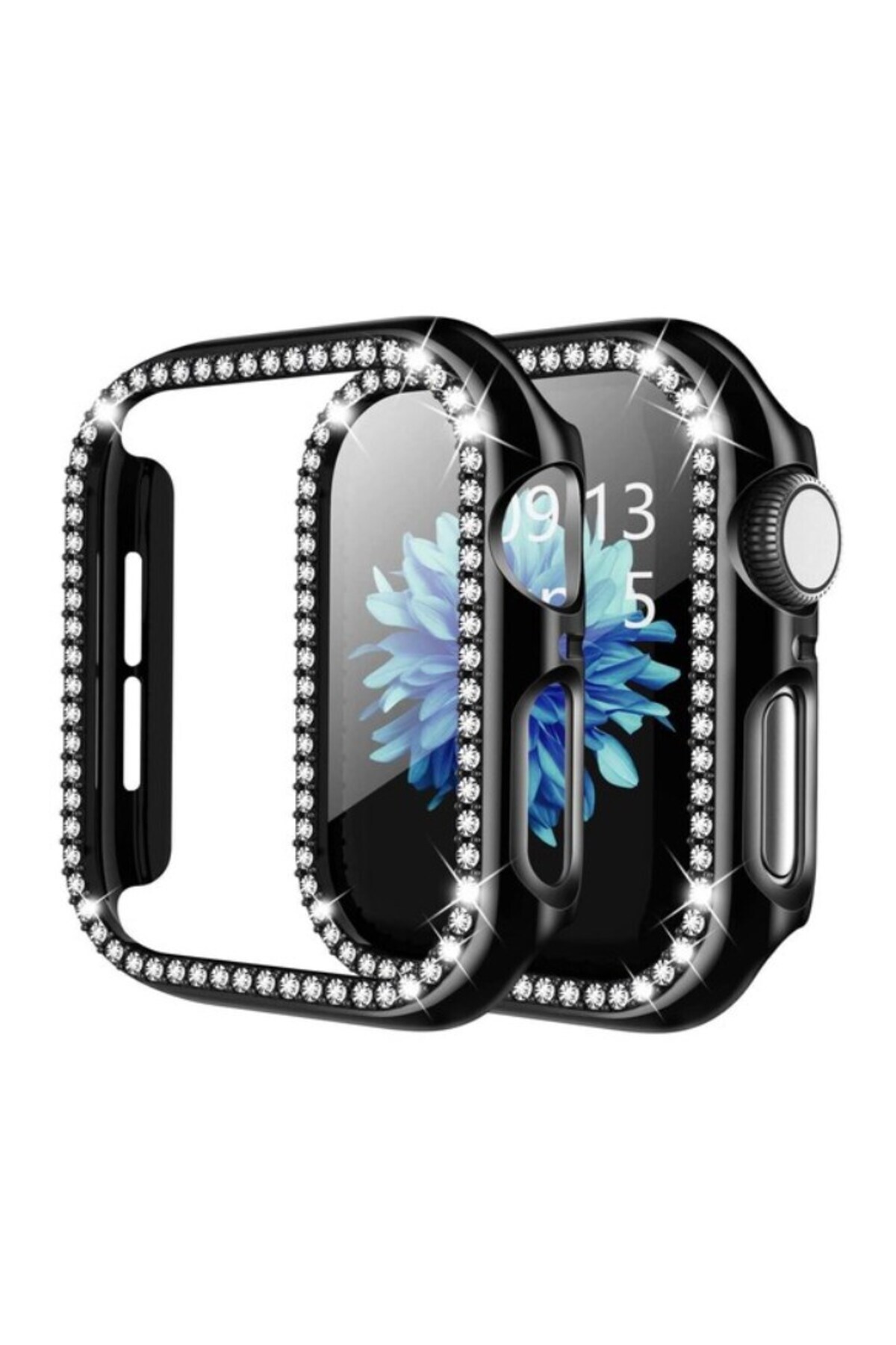 Apple Watch 7 8 9 41mm Uyumlu Tek Sıra Parlak Taşlı Rubber Kasa Kapak Apple Watch 7 8 9 41mm Uyumlu Tek Sıra Parlak Taşlı Rubber Kasa Kapak 41mmteksiratas تک سایز