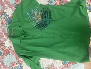 Kadın Çimen Yeşili Palmiye Pul Detaylı Oversize Dokuma Poplin Gömlek GML-19001016 Kadın Çimen Yeşili Palmiye Pul Detaylı Oversize Dokuma Poplin Gömlek GML-19001016 L