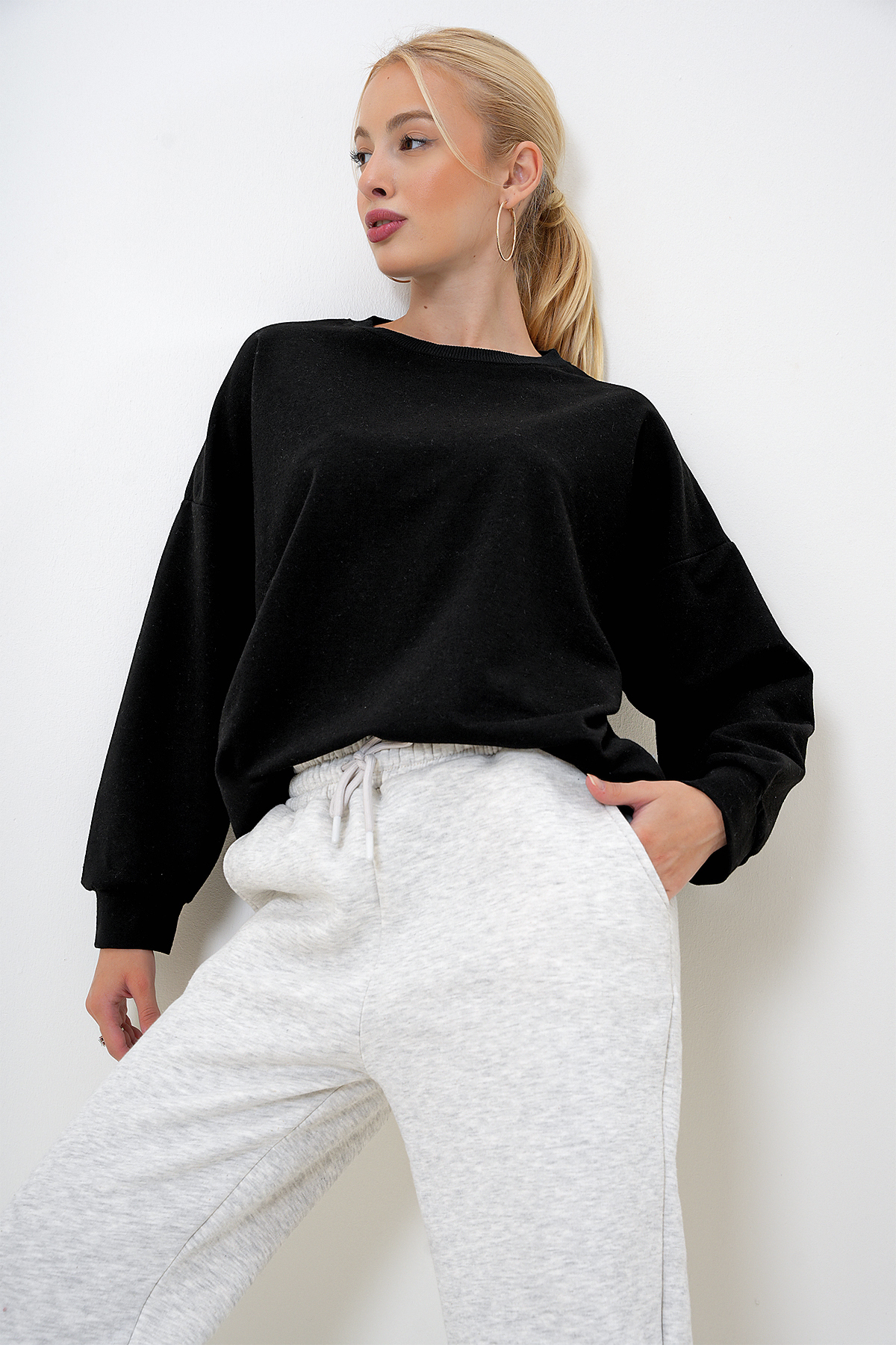 Kadın Siyah Butterfly Baskılı Eteği Yırtmaçlı Oversize Sweatshirt SWT-19000565 Kadın Siyah Butterfly Baskılı Eteği Yırtmaçlı Oversize Sweatshirt SWT-19000565 L