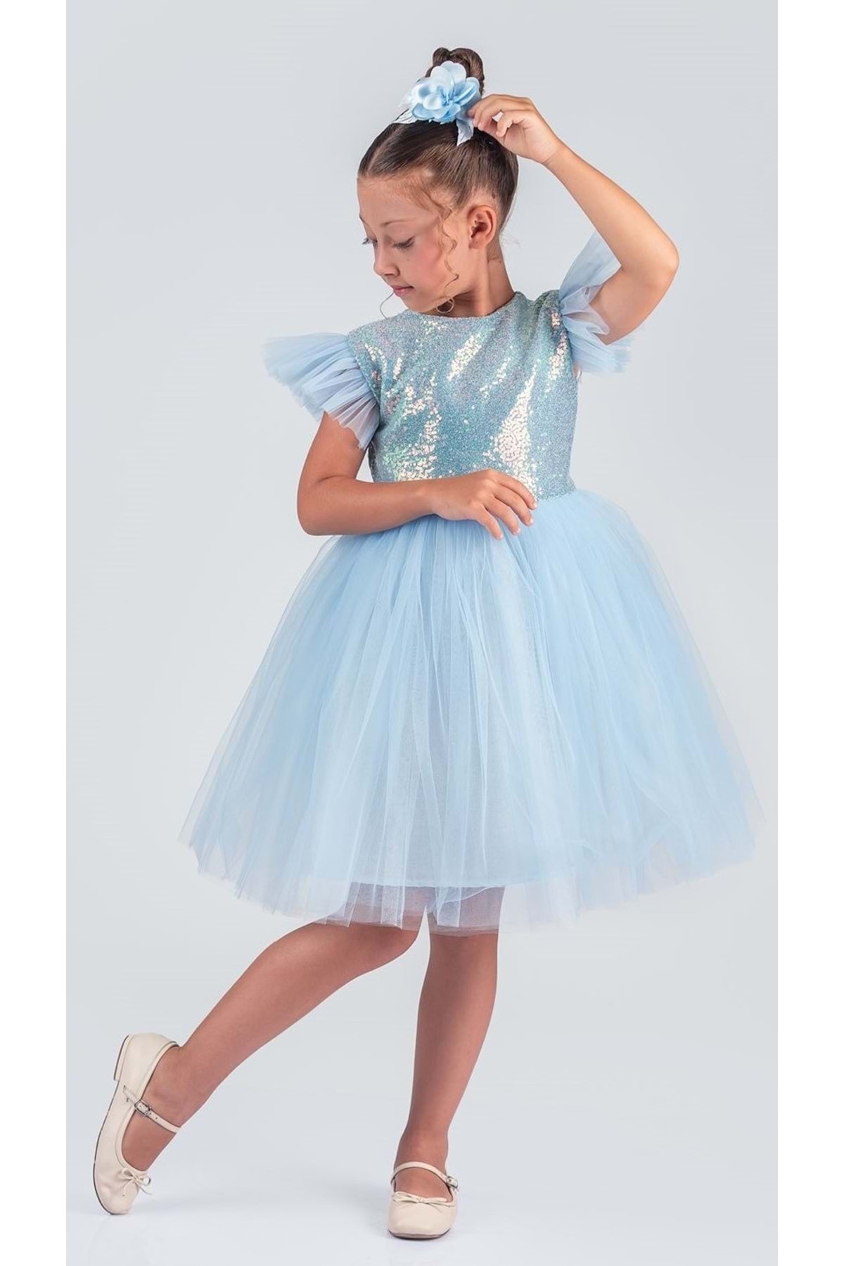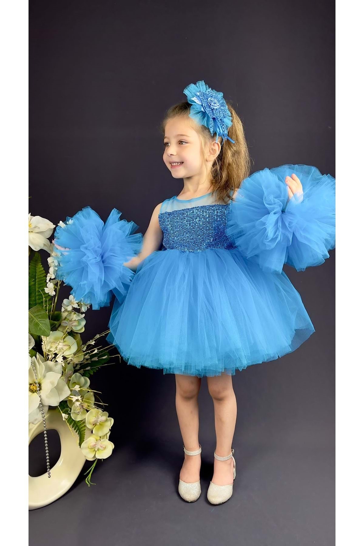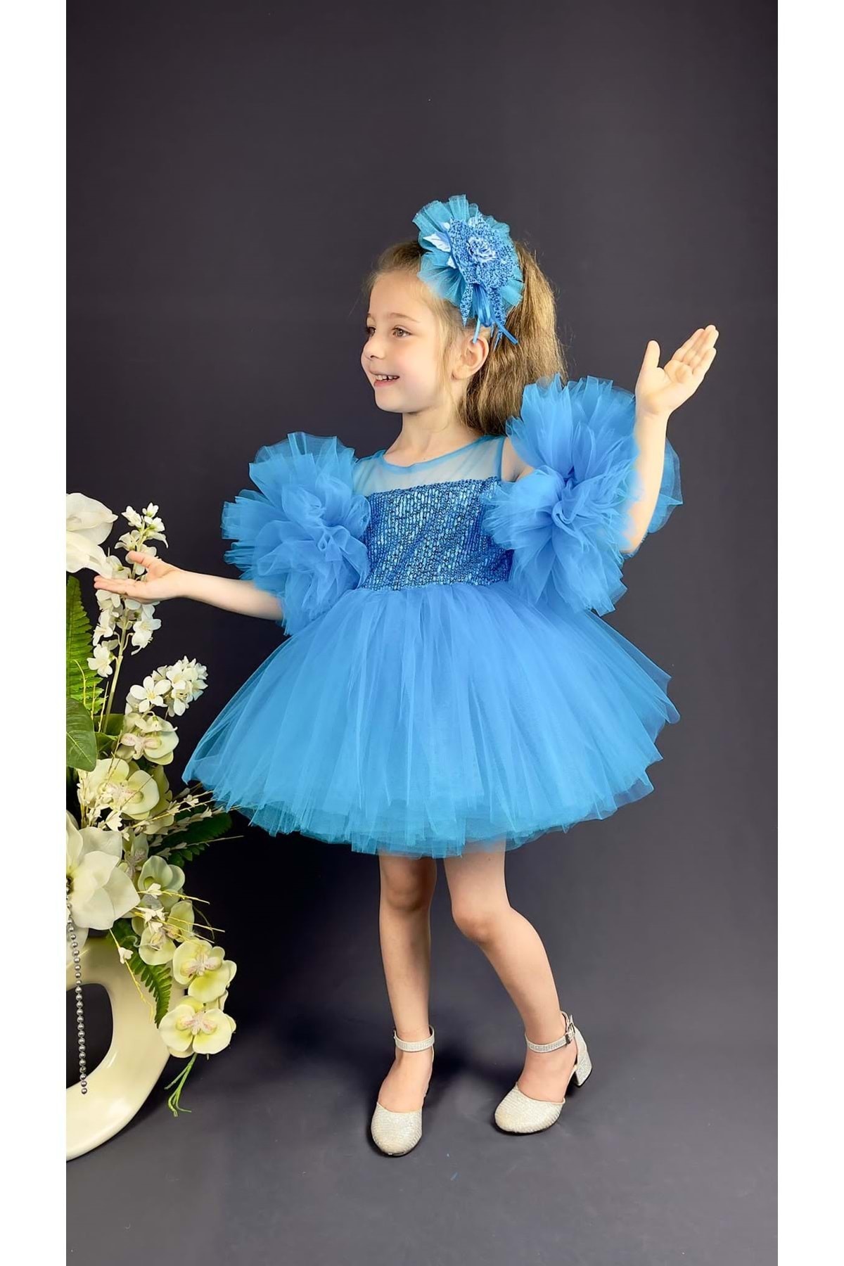 Şifon Robalı Ponpon Kol Pul Payetli Kız Çocuk Kabarık Etek Tütülü Abiye Mavi Şifon Robalı Ponpon Kol Pul Payetli Kız Çocuk Kabarık Etek Tütülü Abiye Mavi MNK0378 12 Yaş