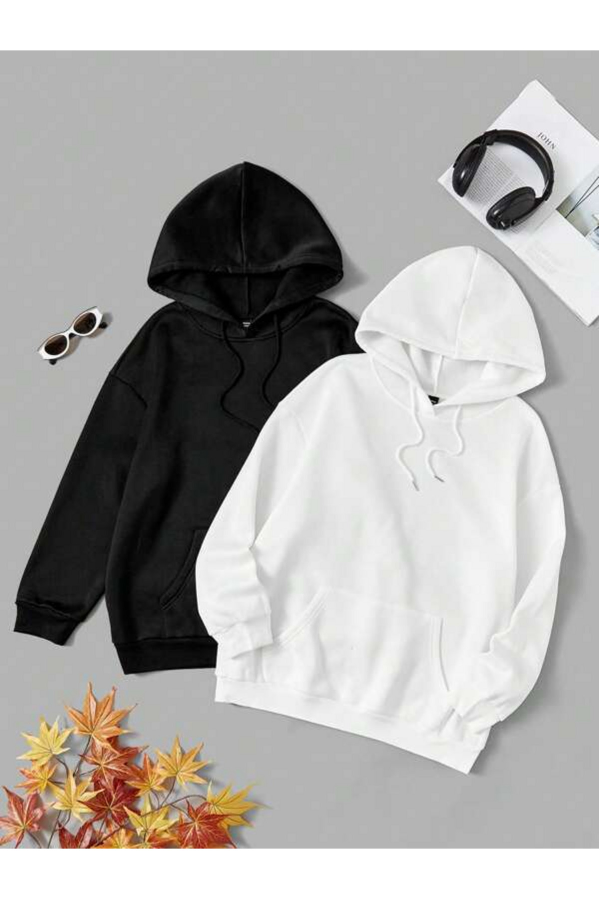Unisex Beyaz Kapüşonlu 3 Iplik Oversize Swetshirt Unisex Beyaz Kapüşonlu 3 Iplik Oversize Swetshirt 13465523 XL
