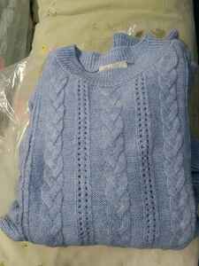 Kadın Mavi Ajurlu Fırfırlı Kazak Kadın Mavi Ajurlu Fırfırlı Kazak 1020W1007 Standart