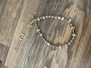 Beyaz Pırıltı Uçlu Bal Rengi Barok Incili Kalpli Boncuk Kolye Beyaz Pırıltı Uçlu Bal Rengi Barok Incili Kalpli Boncuk Kolye FMA1037 40 cm