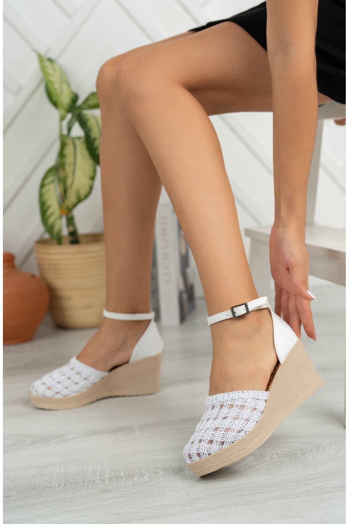 Dolgu Taban Ekose Örgü Taşlı Beyaz Karnıyarık Ayakkabı Dolgu Taban Ekose Örgü Taşlı Beyaz Karnıyarık Ayakkabı G3545M3664 41