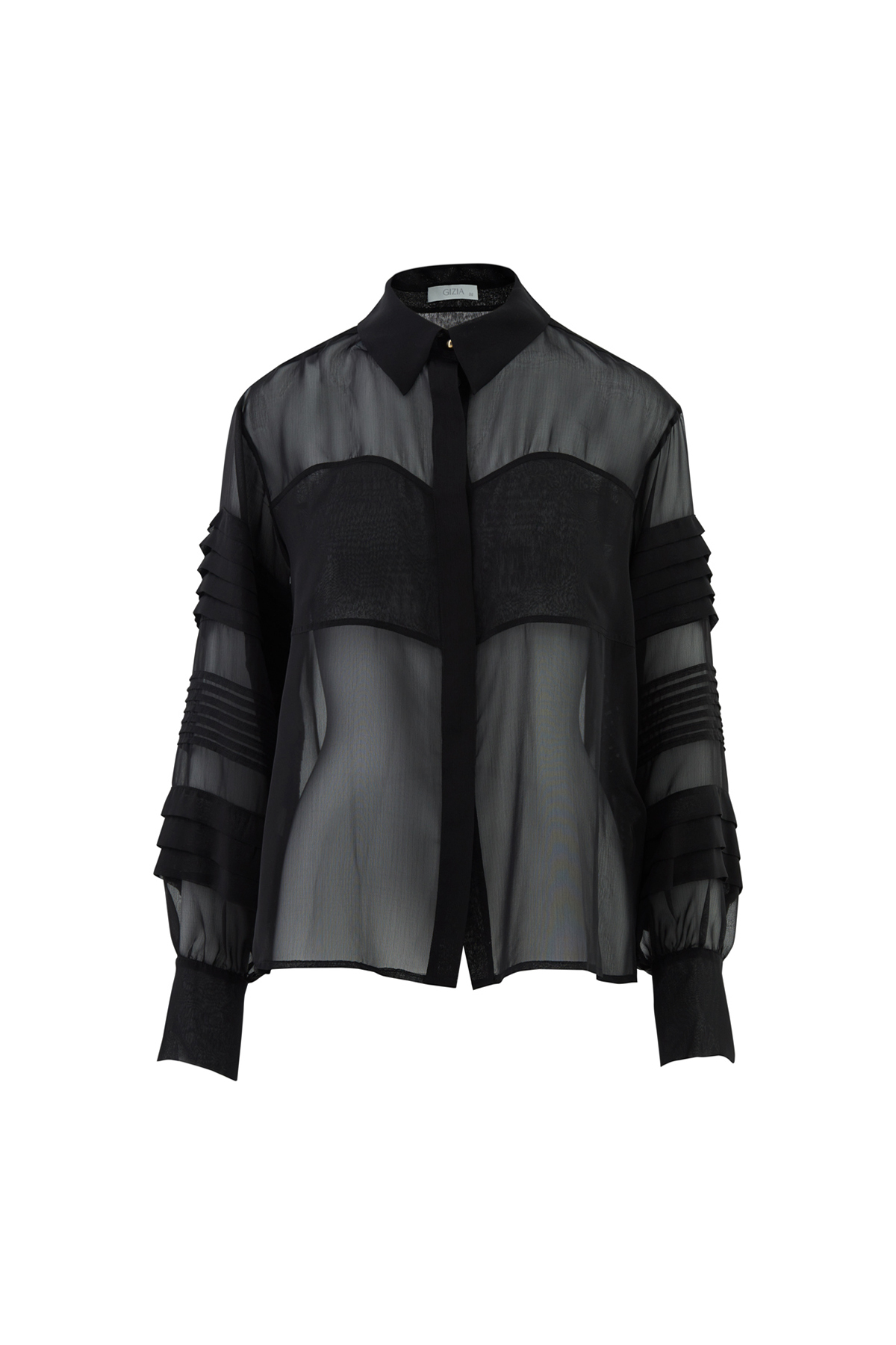 Yakası Ve Kenarları Pile Detaylı Siyah Gömlek Yakası Ve Kenarları Pile Detaylı Siyah Gömlek M2KM2G1211 48