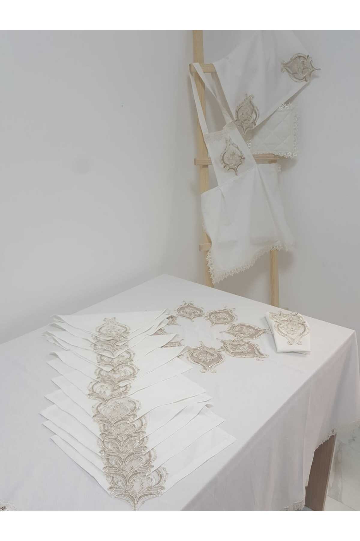 Fransız Güpürlü Eylül Dantel Mutfak Takımı 17 Parça Fransız Güpürlü Eylül Dantel Mutfak Takımı 17 Parça CD441218 تک سایز