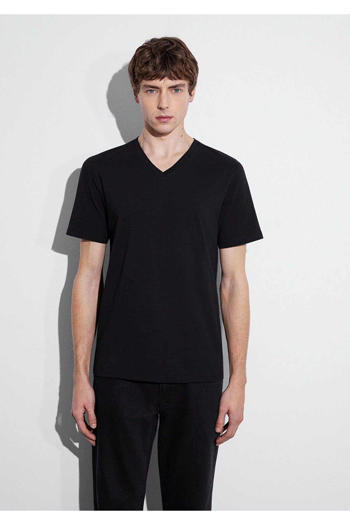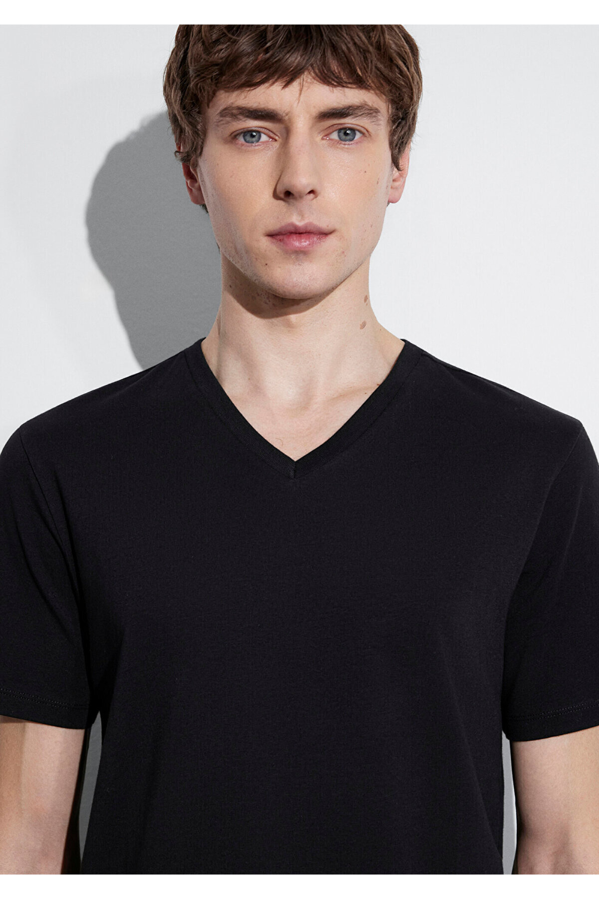 Stretch V Yaka Siyah Basic Tişört Fitted / Vücuda Oturan Kesim 061748-900 Stretch V Yaka Siyah Basic Tişört Fitted / Vücuda Oturan Kesim 061748-900 3XL
