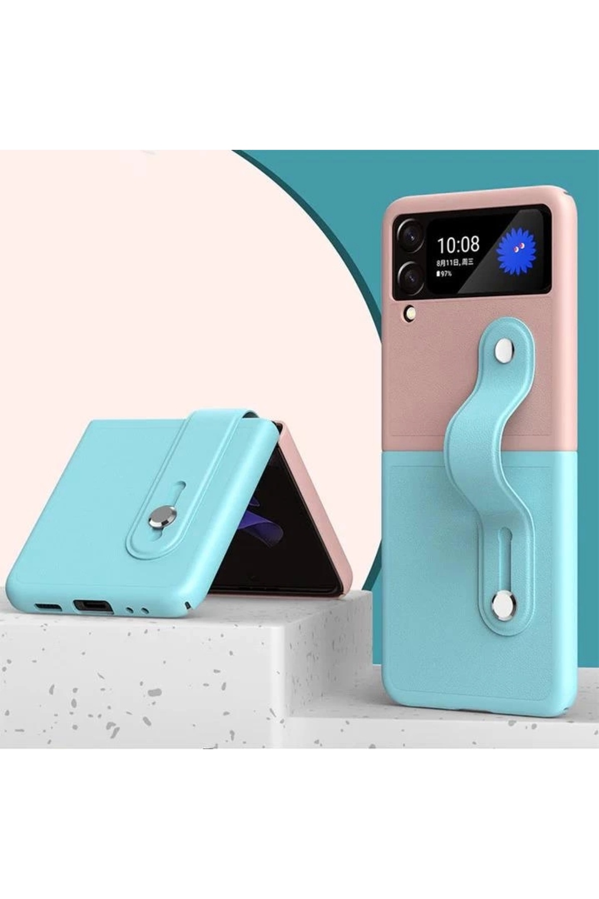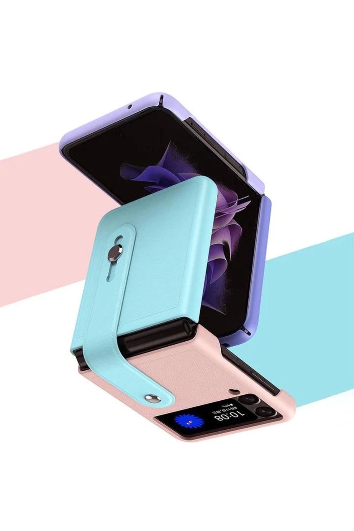 Samsung Galaxy Z Flip 3 Katlanır 2 Renkli Parmak Tutuculu Deri+Silikon Kılıf Samsung Galaxy Z Flip 3 Katlanır 2 Renkli Parmak Tutuculu Deri+Silikon Kılıf zfl3 تک سایز