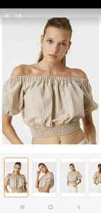 Omzu Açık Crop Bluz Beli Lastikli Keten Karışımlı Omzu Açık Crop Bluz Beli Lastikli Keten Karışımlı 2SAK30009CW 48
