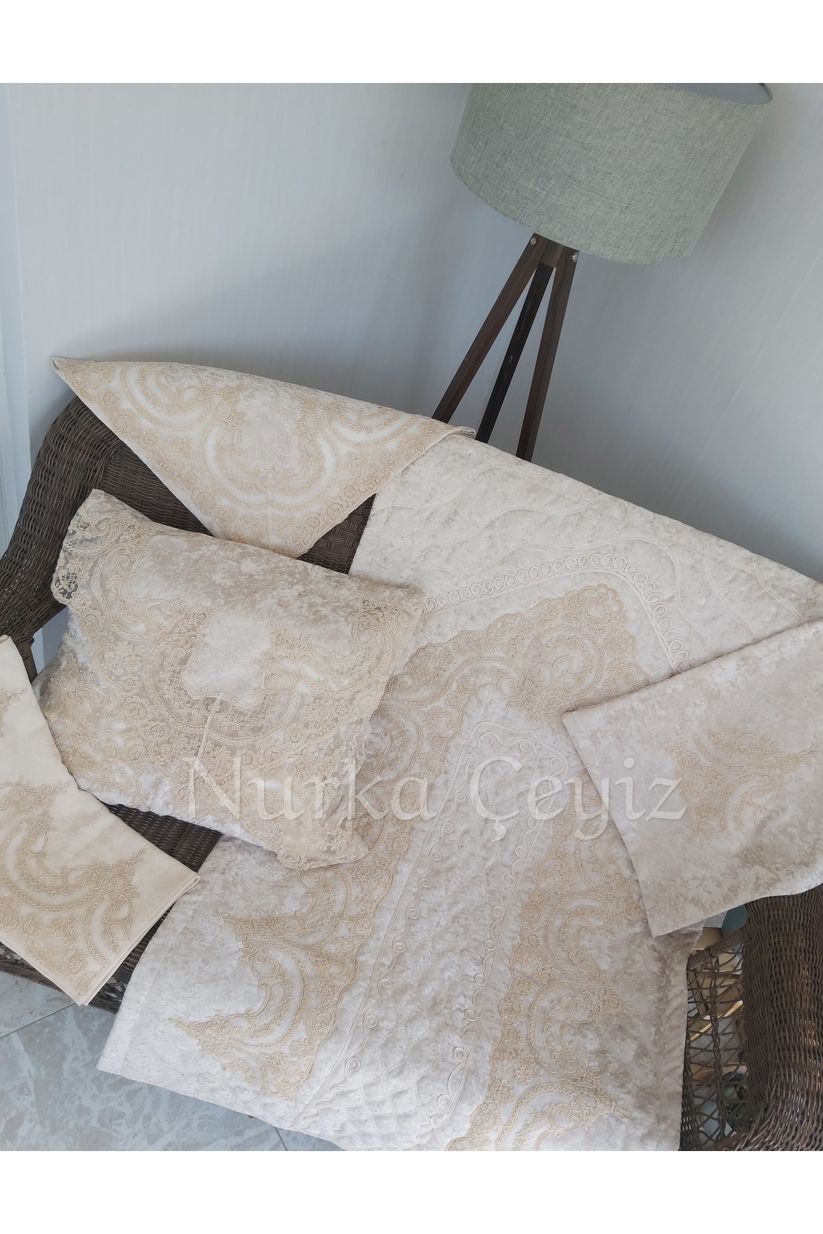 Fransız Güpürlü Kadife Seccade Bohça Seti Yasemin Pudra Fransız Güpürlü Kadife Seccade Bohça Seti Yasemin Pudra 201242 30 x 45