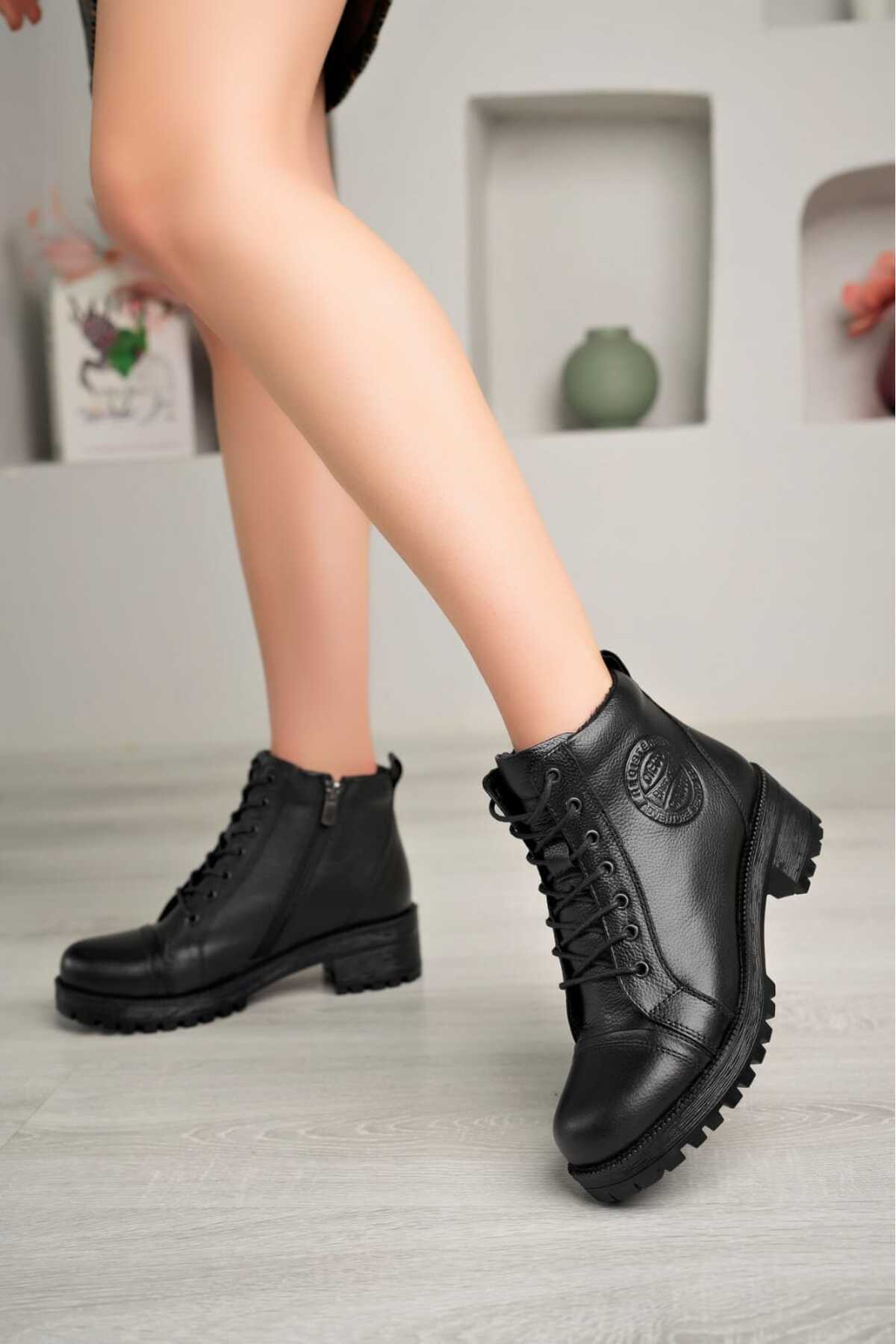 Hakiki Deri Siyah Kadın Topuklu Deri Bot TRC-3773 Hakiki Deri Siyah Kadın Topuklu Deri Bot TRC-3773 40