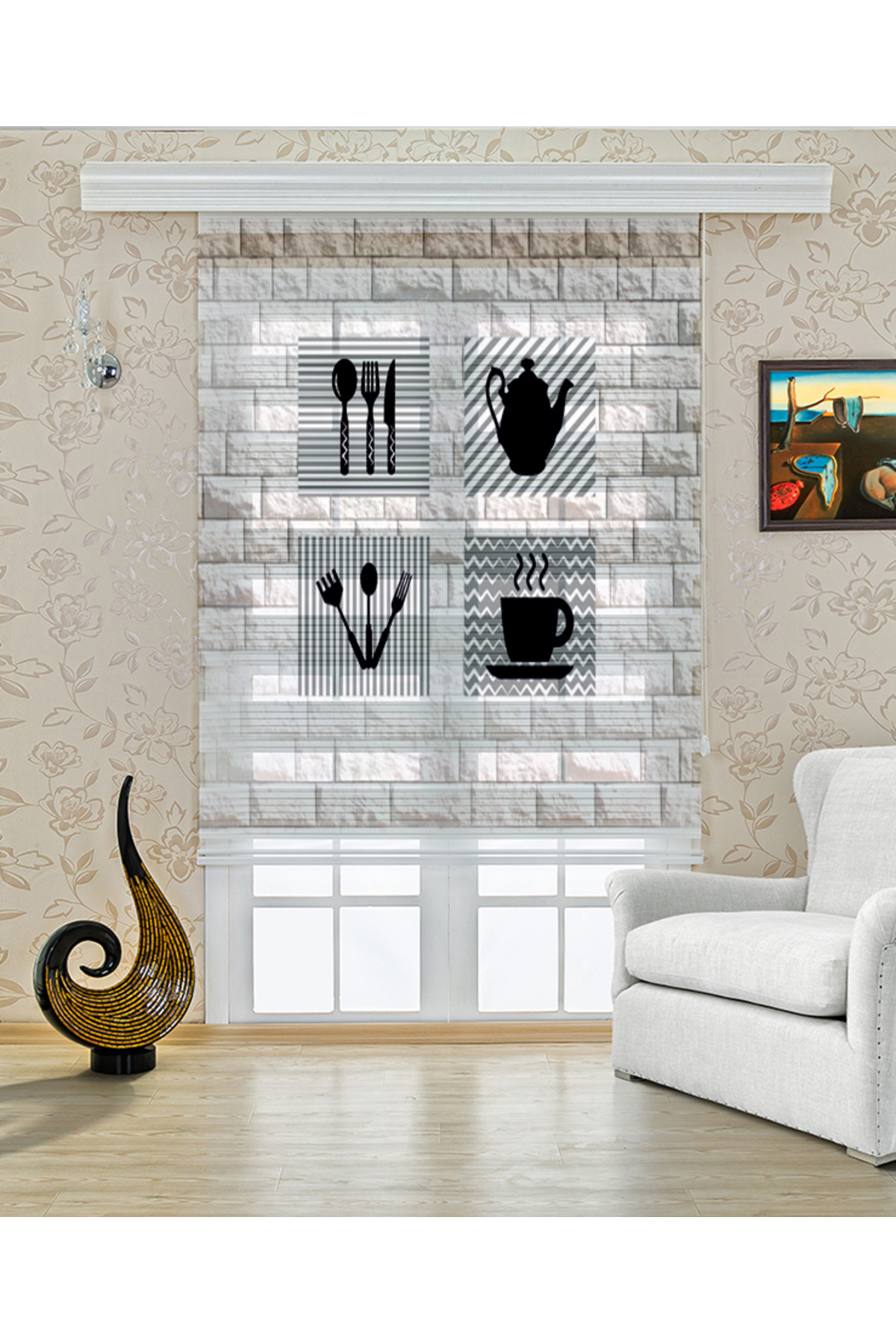Mutfak Dekoratif Kahve Baskılı Zebra Perde Mutfak Dekoratif Kahve Baskılı Zebra Perde Chdbs1058 170 x 250