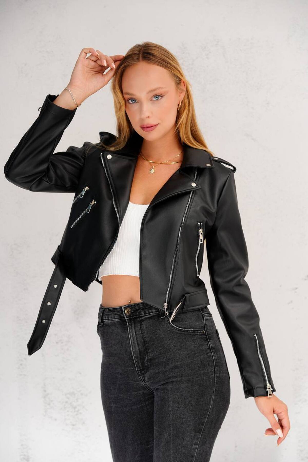 Kol Fermuar Detaylı Siyah Slim Fit Kadın Ceket Kol Fermuar Detaylı Siyah Slim Fit Kadın Ceket CKT1300 L